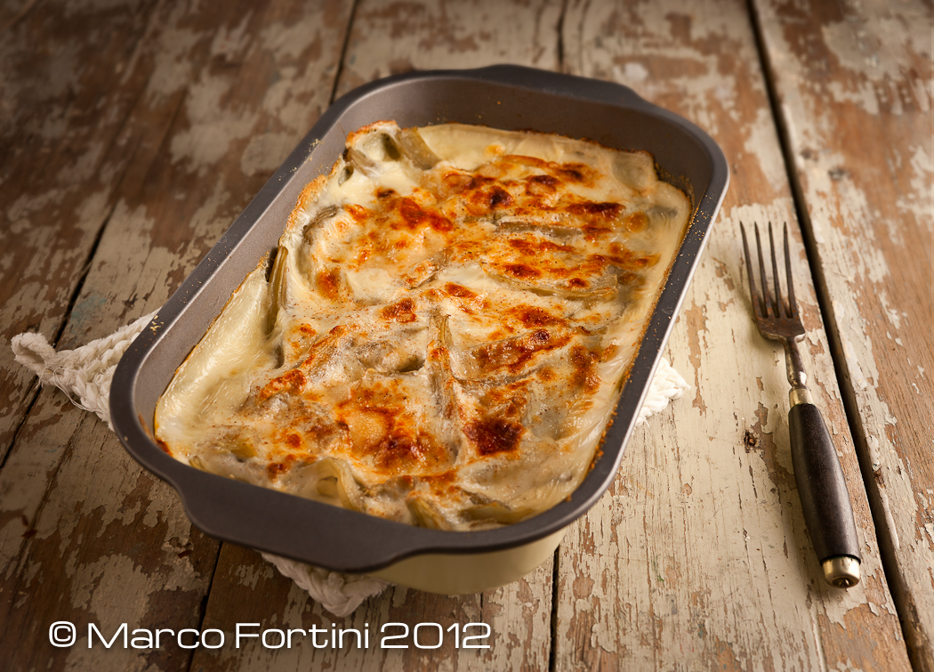 Il sapore delicato della besciamella ben si sposa con quello piu' amarognolo dei cardi mentre l'aggiunta del parmigiano conclude in bellezza questo buonissimo piatto unico.