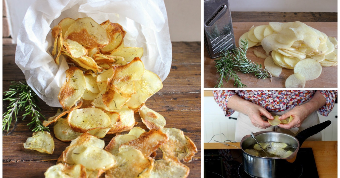 Le chips di patate sono sottili sfoglie di patate fritte, croccanti e saporite; con queste chips, ideali come contorno, ottime per un aperitivo o come snack, solleticherete il palato dei vostri ospiti, stuzzicandoli con le classiche e irresistibili patatine da sacchetto, ma fatte con le vostre mani!