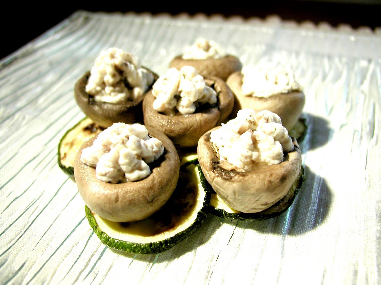 In una terrina a parte amalgamate il caprino con il grana grattugiato, il pâté di olive, il prezzemolo lavato e finemente tritato e una macinata di pepe. Con il composto formate delle palline che chiuderete, premendo bene, tra due cappelle di champignon.