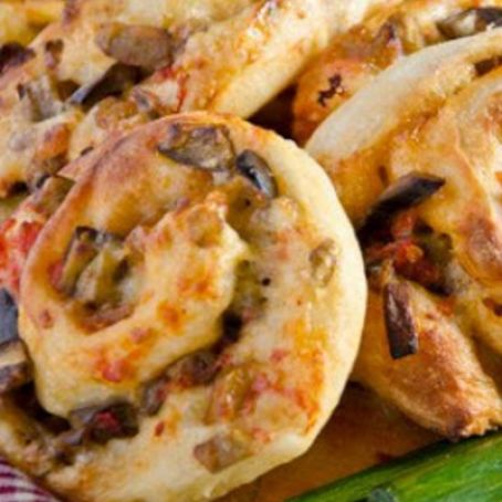 Preparare l'impasto per pizza mettendo la farina in una ciotola capiente. Aggiungere il sale e il lievito sciolto in un po' acqua tiepida. Impastare. Se necessario aggiungere ancora acqua fino a quando non otterremo un impasto morbido ed elastico. Formare un panetto e lasciarlo lievitare in una ciotola infarinata e coperta da un canovaccio pulito fino a che non avrà raddoppiato di volume (circa un’ora e mezza). Lavare e sbucciare la melanzana. Tagliarla a cubetti e cuocerla in una padella con 2 cucchiai d'olio per circa 10 minuti mescolando spesso. Preparare il sugo di pomodoro soffriggendo mezzo spicchio d’aglio in due cucchiai di olio e dopo qualche istante unire i pomodori pelati. Cuocete per circa 15 minuti, aggiustando di sale.Stendere la pasta in un rettangolo non troppo sottile. Condire con il sugo di pomodoro (lasciando circa 4 cm di vuoto su ogni lato), le melanzane e i cubetti di mozzarella ben asciutta. Arrotolare la pasta dal lato più lungo formando un rotolo. Sigillarlo bene alle estremità e sul punto di giuntura. Tagliare con un coltello delle girelle larghe circa 2 o 3 cm. Sistemarle su una teglia rivestita di carta da forno. Infornare in forno già caldo a 250° per circa 15 minuti.