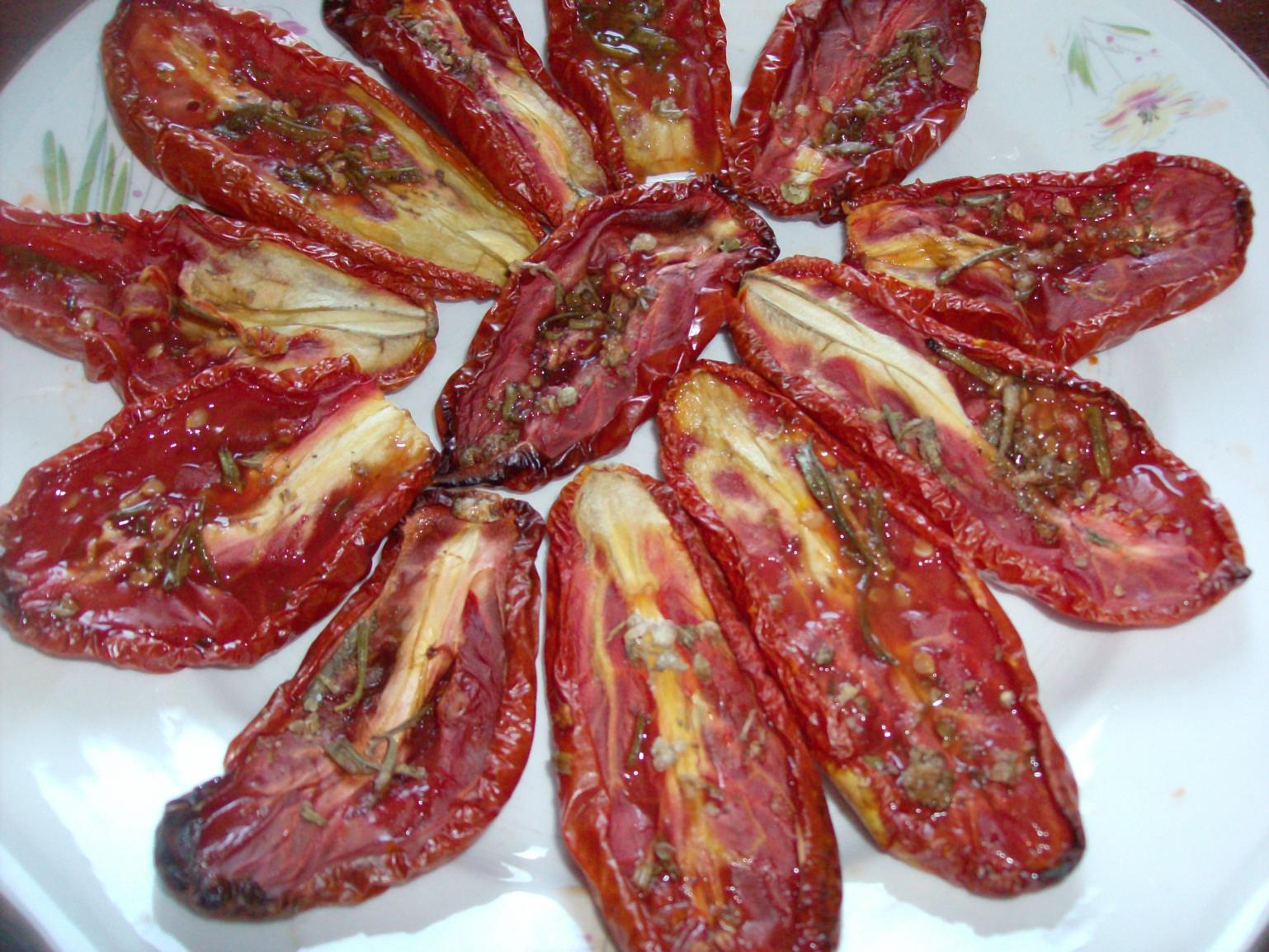Sterilizzate a 100 °C per 45 minuti e riponete i vasi in luogo buio, fresco e asciutto. Lasciate riposare i pomodori per almeno 1 mese prima di utilizzarli.Portate a ebollizione abbondante acqua salata in una pentola e sbollentatevi i pomodori secchi per qualche secondo affinché si ammorbidiscano; scolateli e lasciateli asciugare su un canovaccio per circa 12 ore.