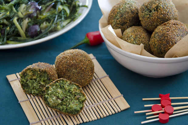 Eliminare le foglie più esterne della scarola e il torsolo finale del cespo. Lavarla accuratamente più volte in acqua fredda e lessarla in acqua bollente per 7-8 minuti. Scolare e nel frattempo soffriggere l’aglio e il peperoncino nell'olio. Aggiungere la scarola ben sgocciolata e le olive, il sale e cuocere tutto per circa 15 minuti, con il coperchio, aggiungendo un bicchiere d'acqua per agevolare la cottura della verdura. Una volta cotta eliminare l'aglio e il peperoncino. Frullare la verdura fino a ottenere un composto verde e omogeneo, metterlo in una terrina e aggiungere la mollica di pane, l'uovo, il parmigiano e il pane grattugiato. Amalgamare bene tutti gli ingredienti e formare le polpette con le mani. Impanarle nel pangrattato e friggerle in abbondante olio caldo, finché non saranno belle dorate. Scolare su carta assorbente e servire calde.