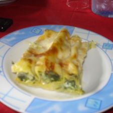 Frullare gli spinaci e la ricotta, unire l'uovo, il sale, il pepe, il parmigiano e la noce moscata e continuare a frullare fino a quando non si otterrà una purea di un bel colore verde; avremo così il composto dei nostri cannelloni. Riempire ogni foglia di pasta del ripieno appena creato e adagiare i cannelloni in una teglia dove avremo precedentemente messo uno strato di pomodoro. Ricoprire con la salsa, la besciamella e una spolverata di parmiggiano e mettere in forno fino a doratura.