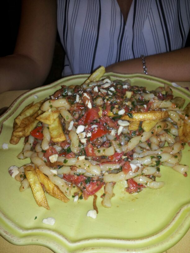 usare per condire una pasta fresca, se possibile le busiate tipiche del trapanese. Accompagnare il piatto con patatine fritte.