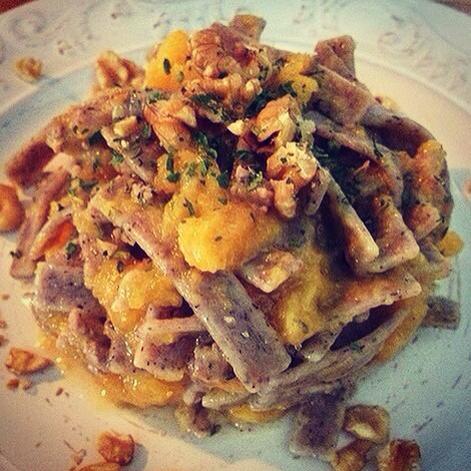 Questa ricetta è una variante della classica pasta con la zucca, davvero buona ed originale. Io ho usato i pizzoccheri, un formato di pasta tipico della valtellina, hanno la forma di tagliatelle spesse ma corte, il nome di questo tipo di pasta, deriva dal termine pinzare che significa proprio schiacciare, la pasta è ricavata da un impasto preparato con farina di grano saraceno e farina di frumento che le dona un colore grigiastro. Questa pasta nella tradizione valtellinese viene spesso preparata con verza e patate, io invece ho utilizzato la zucca e la salsiccia, l'accostamento è davvero ottimo.