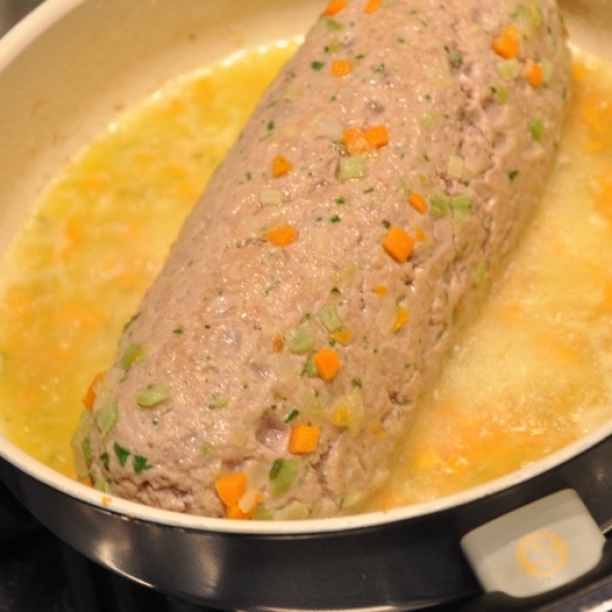 Unire al macinato tutti gli ingredienti, fare un bel polpettone
