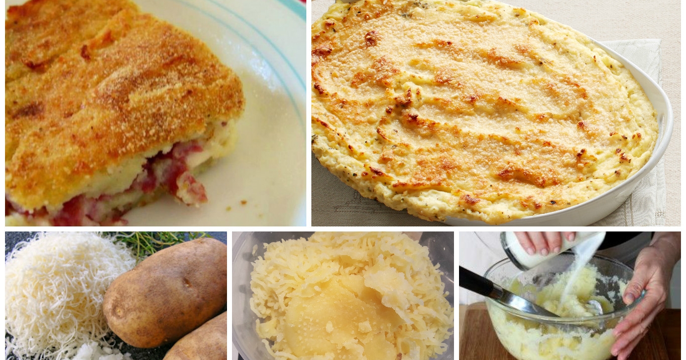 Lavate, sbucciate e tagliate a pezzi grandi le patate. Mettetele in una pentola a bollire in acqua salta e dopo circa 20 minuti di cottura lasciate intiepidire e schiacciatele. Aggiustate di sale, noce moscata e olio e mettete il composto in una ciotola abbastanza capiente. Unite la mozzarella tagliata a dadini, i piselli, i funghi trifolati, il prosciutto cotto, il parmigiano grattugiato e le uova. Amalgamate il tutto e aggiustate di nuovo con sale e prezzemolo.