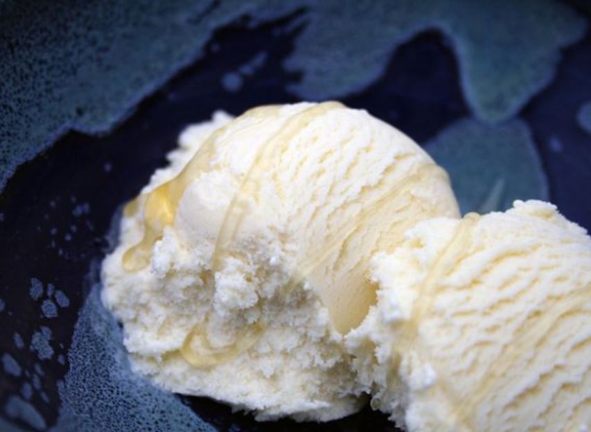 Mescolare in una ciotola panna, latte, miele e vanillina, quindi versare nella gelatiera e azionare.