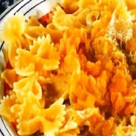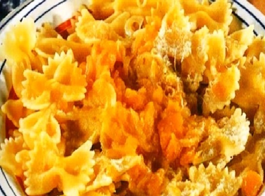 Nel frattempo cuocere le farfalle ed aggiungerla in padella saltandola con i sugo.