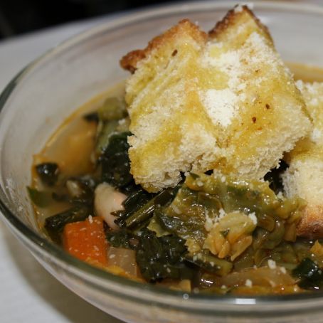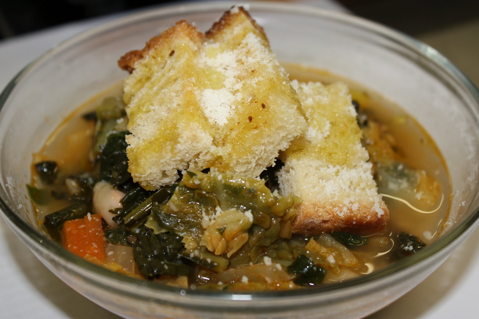 Aggiungere il pane tagliato a fette e, mescolando, lasciare bollire per 10 minuti.