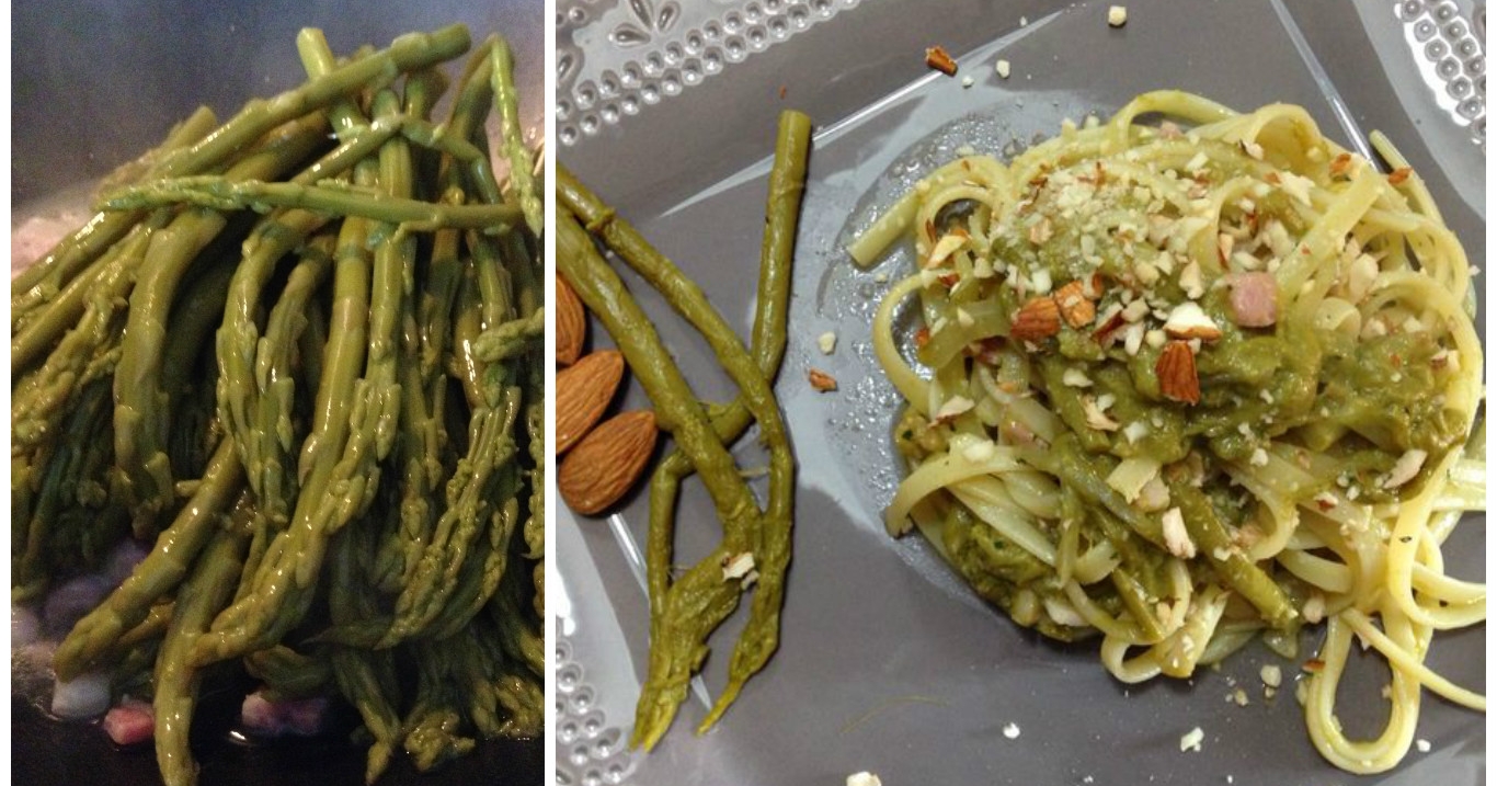 Ebbene si dopo aver cucinato melanzane e zucca a volontà, finalmente oggi mi dedico agli asparagi. Mi ricordo che quando ero piccola, papà il sabato di ritorno dal lavoro, comprava un mazzetto di asparagi selvatici e li preparava con la pasta oppure faceva una grande frittata. Io, da grande amante della pasta, non potevo non prepararla con gli asparagi, il guanciale e una spolverata di mandorle, ottimi, è proprio vero che certi odori e sapori ci riportano alla mente i ricordi passati.