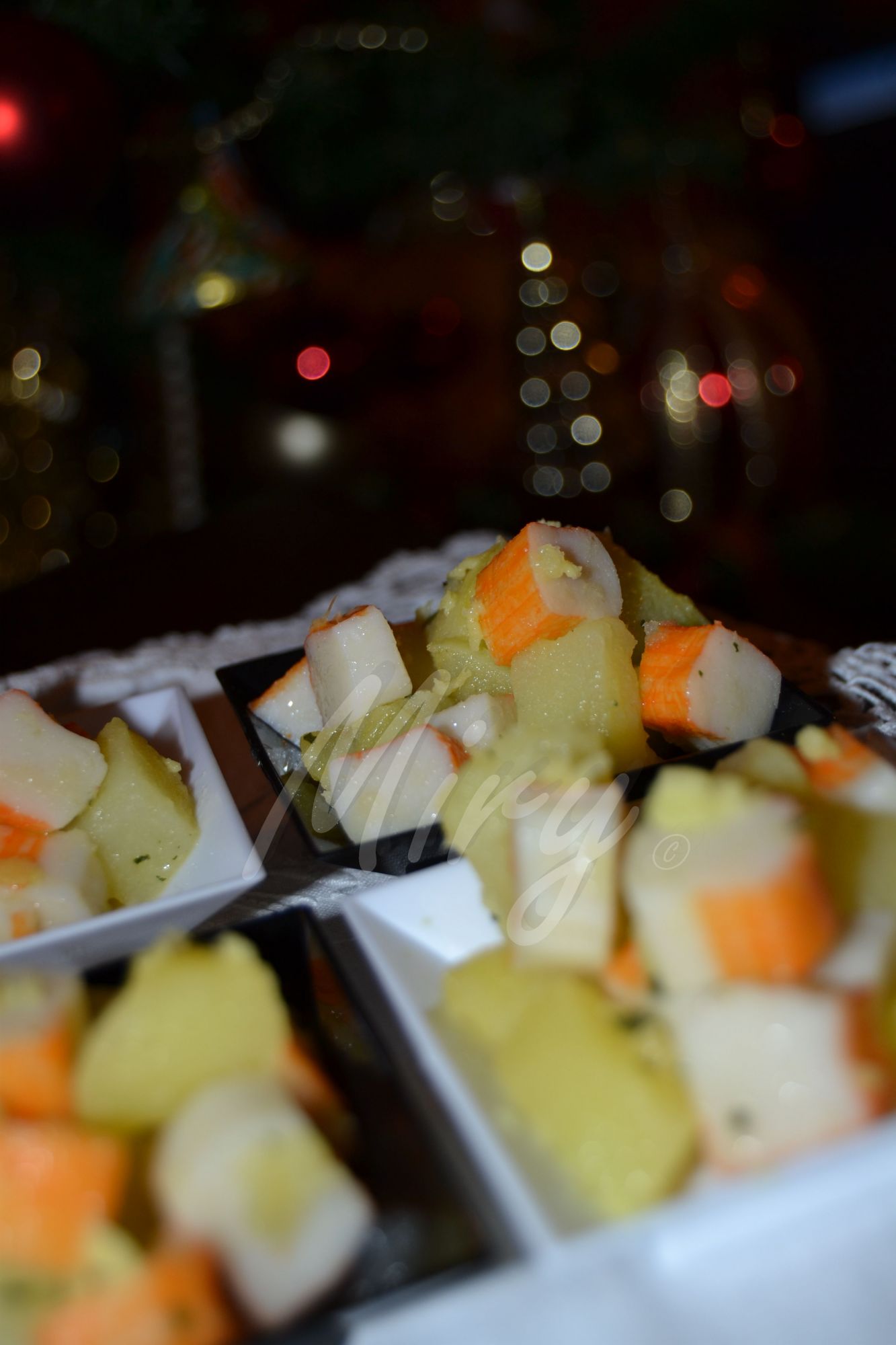 Un altra ideuzza semplice e veloce per il pranzo di Natale, si può preparare il giorno prima e tenere in frigo coperto da pellicola fino al momento di servirlo: oltre che per comodità, questo piccolo espediente permetterà all'insalatina di assorbire fino profondità tutto l'aroma e il sapore dello zenzero, che in questa preparazione regala una freschezza senza eguali. Si può servire come finger-food in piccole ciotoline monoporzione per un aperitivo in piedi oppure in un'insalatiera da cui tutti prenderanno la porzione desiderata a tavola. E' una rivisitazione del classico polpo con patate, che amo molto e che non può mancare nel menù delle feste!