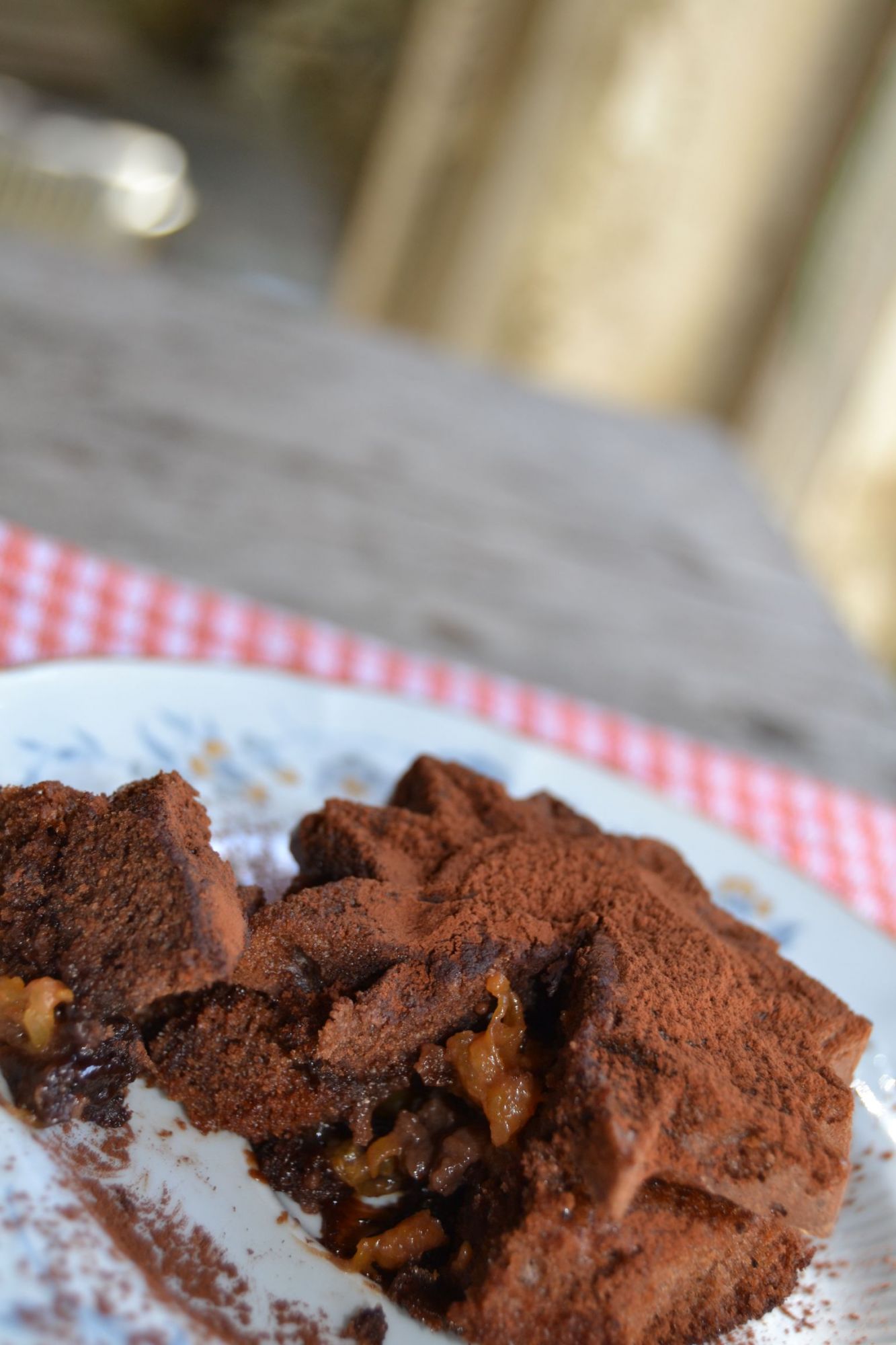 Mettere in uno stampo da muffin una cucchiaiata abbondante di impasto e sopra una cucchiaiata di composta di zucca, che durante la cottura "entrerà" nel centro del tortino.
