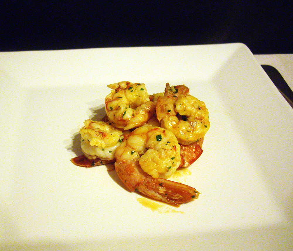 Unite i gamberi, cuoceteli a fuoco vivo per 2 minuti, quindi bagnateli con il vino, in cui avrete sciolto lo zafferano e lasciate evaporare per altri 2 minuti.