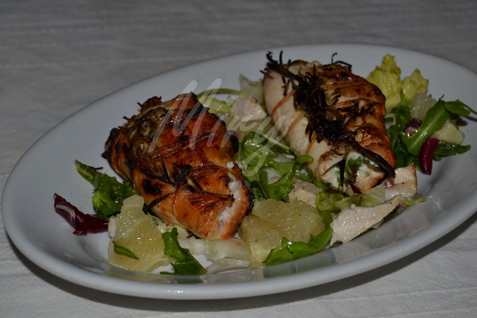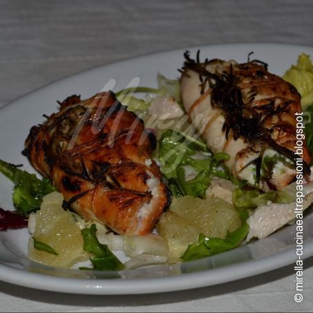 Involtini di pollo alla brace con insalatina fresca al pompelmo