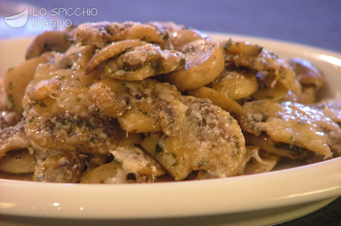 Soffriggere olio con l’aglio spellato .unire i funghi.