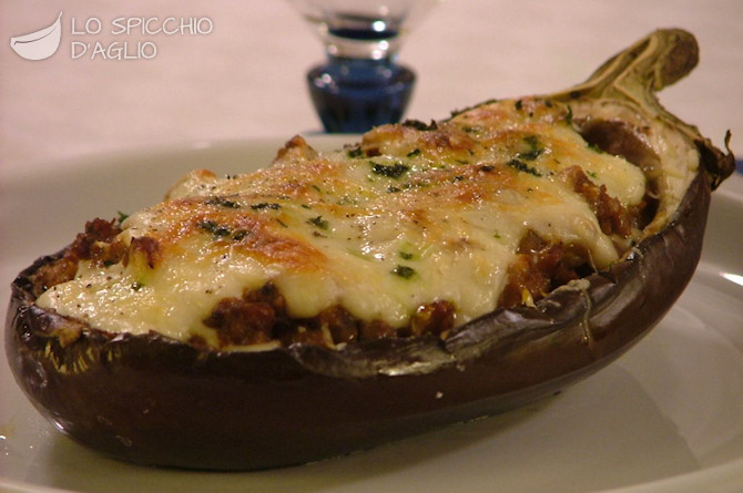 Riempire i gusci delle melanzane con uno strato di carne, unire un po’ di crema, quindi completare con la carne. Decorare in superficie con la crema rimasta, il formaggio, un po’ di prezzemolo tritato, una grattugiata di pepe ed infornare a 200° C per 25-30 minuti circa.