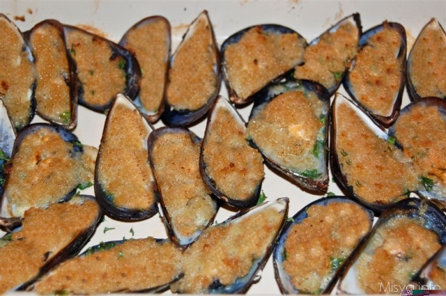 Ricoprire con il composto ogni cozza.