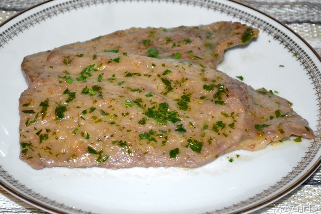 Nella stessa padella aggiungete una noce di burro, il vino, il succo di limone ed il prezzemolo tritati.