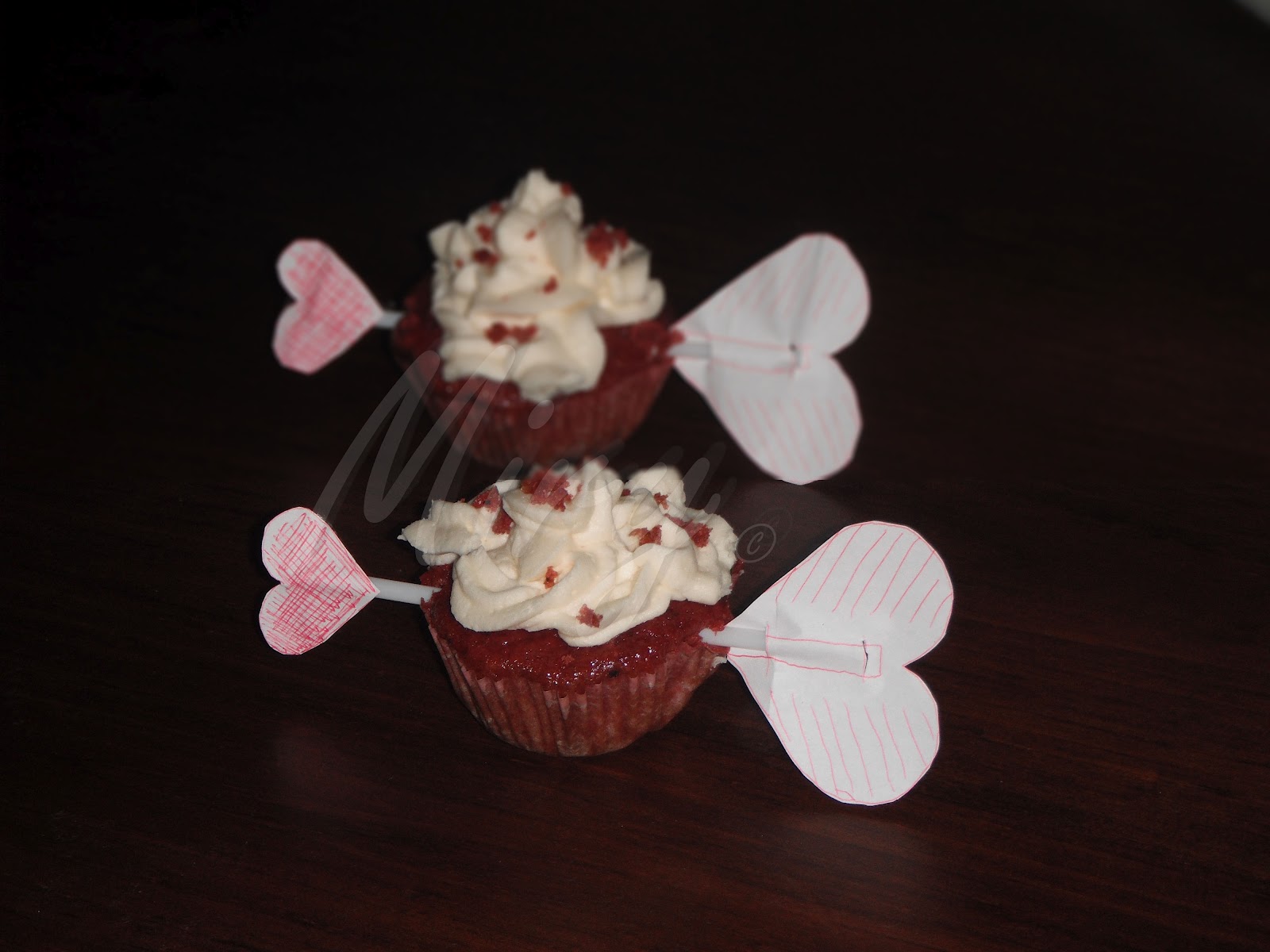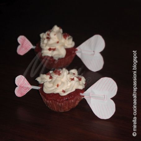 Red velvet cupido cupcakes con frosting al cioccolato bianco