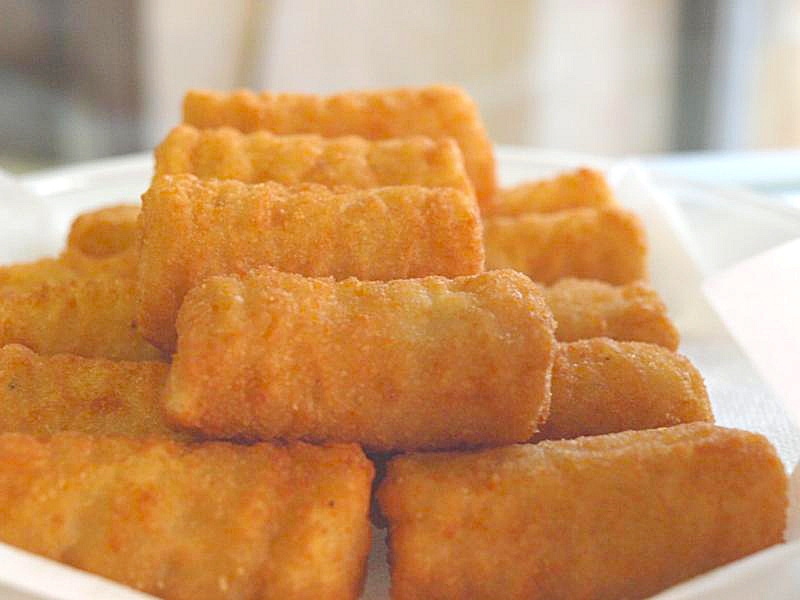 Prendete un cucchiaio del composto e dategli una forma cilindrica, poi intingete ogni pezzo nelle due uova che avrete sbattuto e poi nel pangrattato. Scaldate abbondante olio di arachide in un tegame non troppo grande fino a raggiungere i 180°, e poi mettete 3-4 crocchette alla volta per 2 minuti. Quando le crocchette saranno ben dorate su tutta la superficie, toglietele con una schiumarola e mettetele su un piatto foderato con carta assorbente per togliere l’olio in eccesso. Servite le crocchette di patate ancora calde.