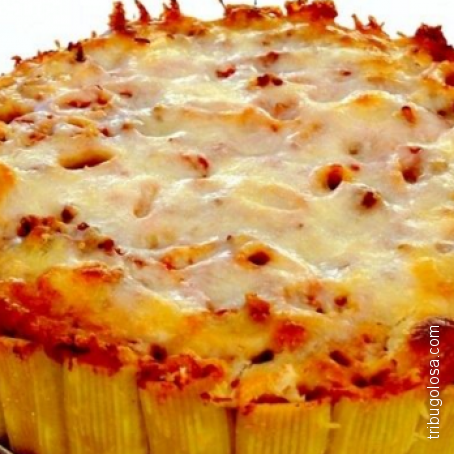 Scolate la pasta molto al dente, conditela con 40 g di burro, riversate su di essa la carne macinata, le melanzane fritte, il prosciutto e la provola tagliati a dadini, 150 g di parmigiano grattugiato, le uova sbattute e la besciamella calda. Rimescolate il tutto, cospargendo con abbondante pepe macinato, e adagiate su una pirofila imburrata. Livellate il composto, cospargete con altro parmigiano grattugiato e gratinate in forno per 30 minuti.