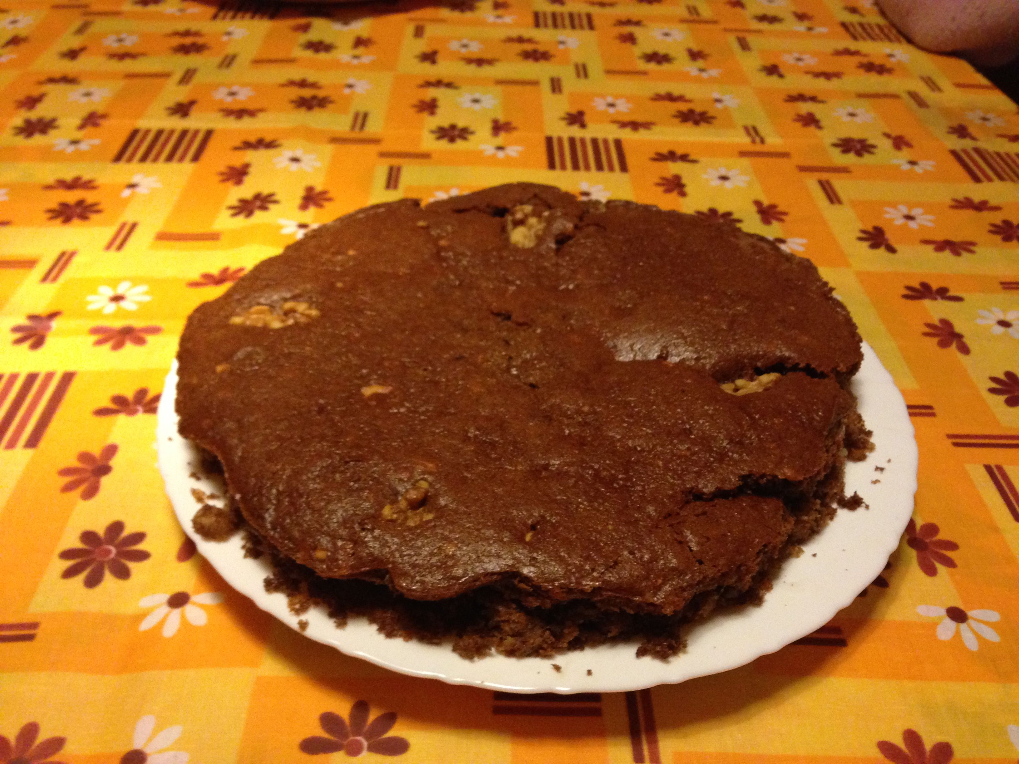 Lavorate il burro a crema. Aggiungete le uova, zucchero e un pizzico di sale. Unite la farina ed il cacao, un bicchierino di latte . Aggiungete le nocciole sgusciate, e per ultimo il lievito per dolci.