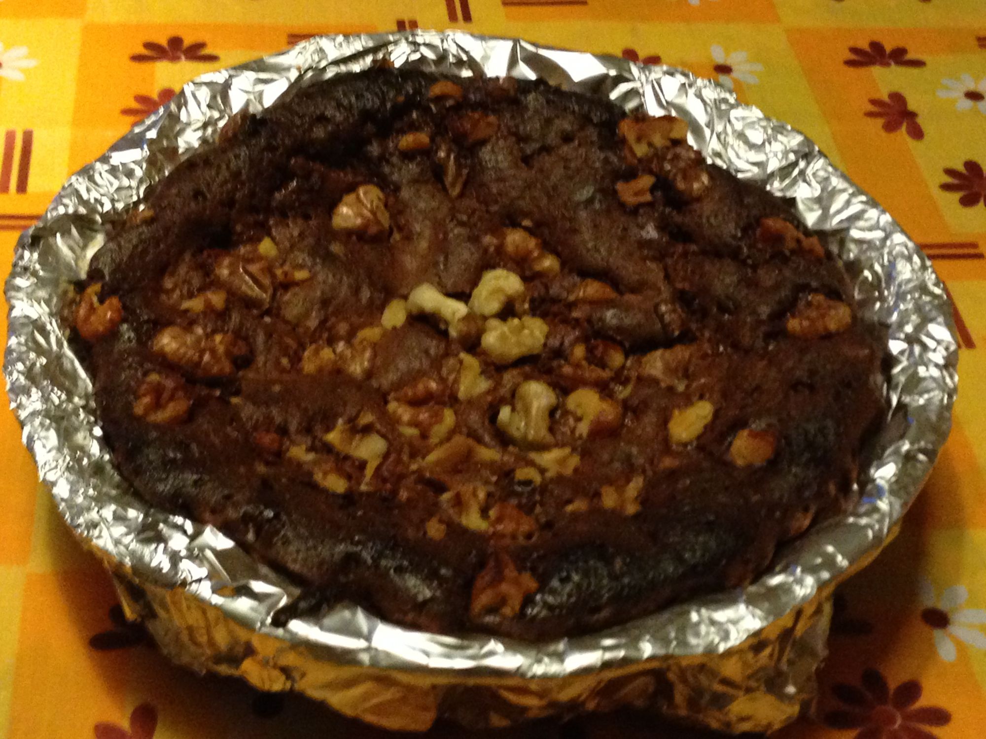 Golosa torta di cioccolato da presentare agli amici e ai parenti arricchita di noci.