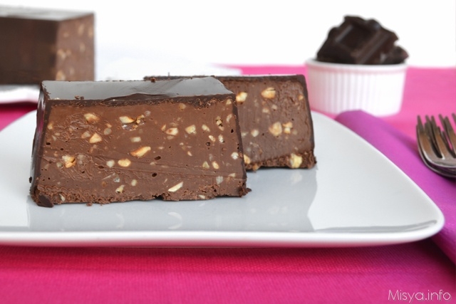 Pulite ora i bordi tutto intorno con un coltello cosicchè possa passare l’aria tra lo stampo ed il cioccolato e creare un vuoto d’aria necessario per poter far staccare il torrone dallo stampo. Capovolgere il torrone in un piatto da portata,tagliare a fette e servire.