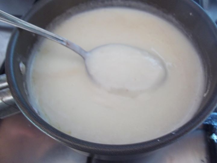 Sempre mescolando, unire il latte a filo e portare il tutto ad ebollizione per 5 minuti. Aggiungere della noce moscata e del formaggio per dare più sapore alla besciamella.