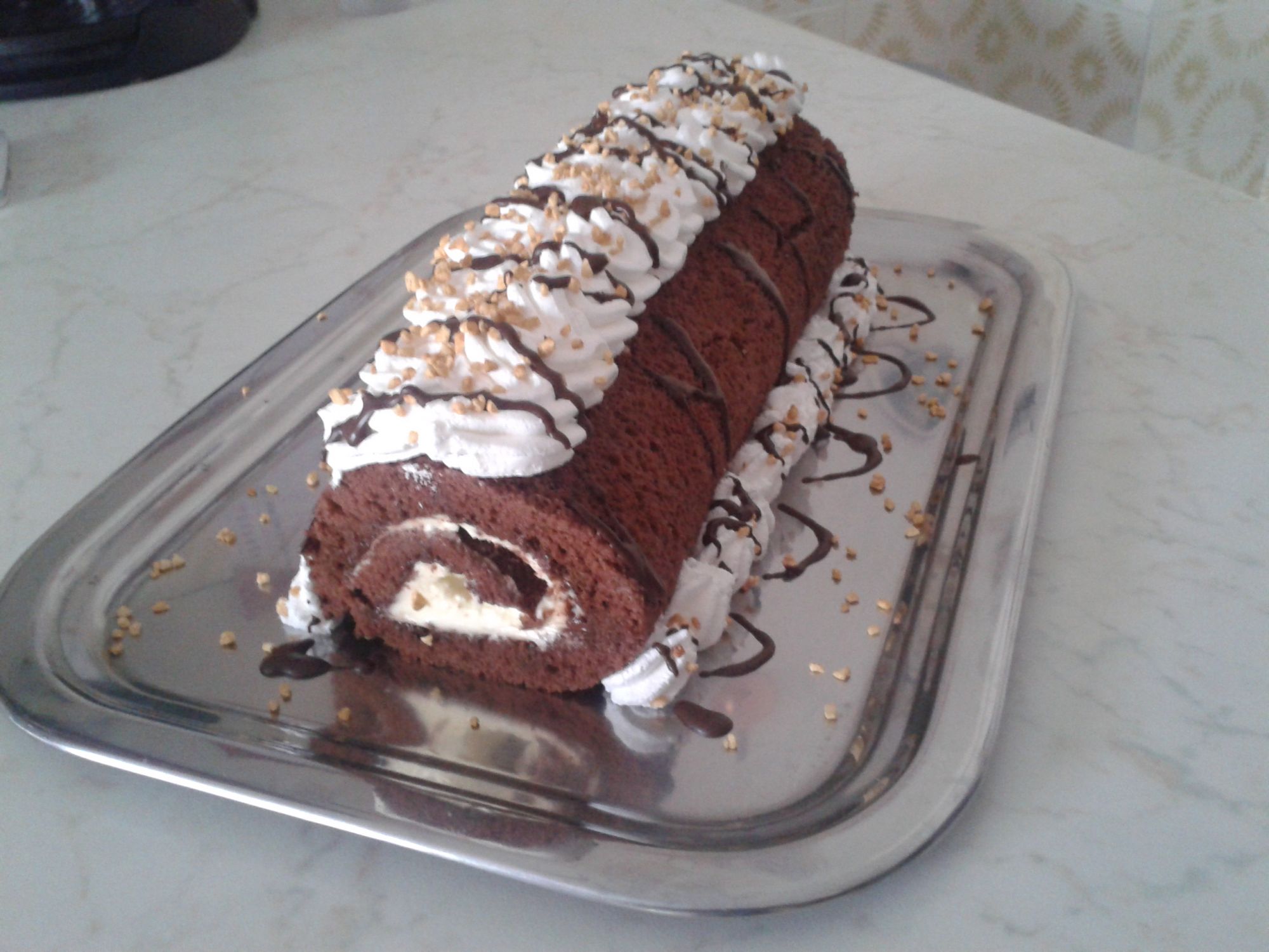 Nel frattempo montare la panna.Sfornare il pan di spagna e mentre è ancora caldo arrotolarlo su sè stesso con l'aiuto della pellicola.