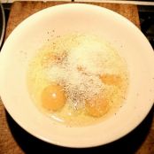 Nel frattempo in una scodella sbattere per bene le uova con il parmigiano, il pepe nero, il sale e un misurino di dialbrodo, quest'ultimo servirà per smorzare l'amaro del radicchio.