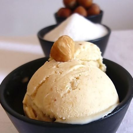 Tritare finemente le nocciole, con lo zucchero per favorire l’operazione.