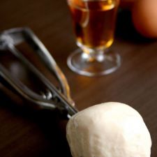 Montare gli albumi a neve, dopodichè aggiungere lo zucchero e la vanillina.