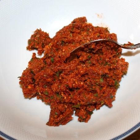 Riporre il pesto di pomodori secchi in barattoli e aggiungere ancora olio d’oliva.
