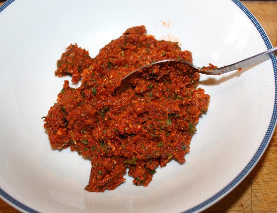 Adesso che è asciutto frullare il pomodoro con l'olio, i chiodi di garofano, il peperoncino e l'aglio.