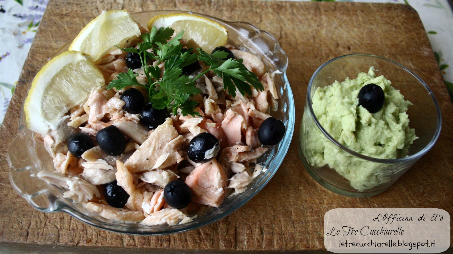 Frullare l'avocado e servirlo a parte insieme al salmone.