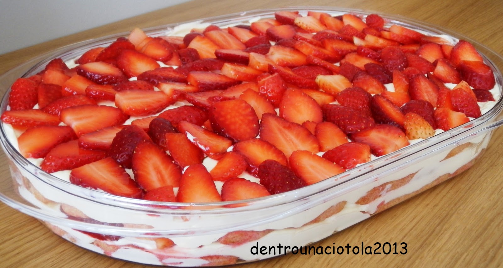 Montate le i tuorli con lo zucchero.Aggiungete il mascarpone e amalgamate bene.Montate gli albumi a neve e aggiungeteli delicatamente il composto, in ultimo montate la panna e mescolate bene (sempre dal basso verso l’alto).Disponete in una pirofila uno strato di pavesini imbevuti nel latte, uno di crema al mascarpone e uno di fragole.Procedete fino all’esaurimento degli ingredienti.