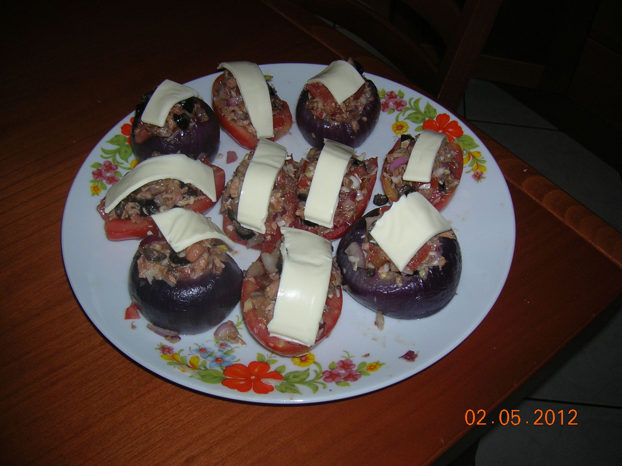 mi è avanzato del composto e ho riempito anche 3 pomodori divisi a metà e svuotati dai semi ...