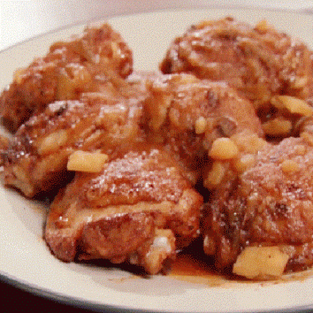 Mettete l'aglio tritato, il pepe, il succo di ananas e lo zenzero fresco grattugiato in una casseruola.
