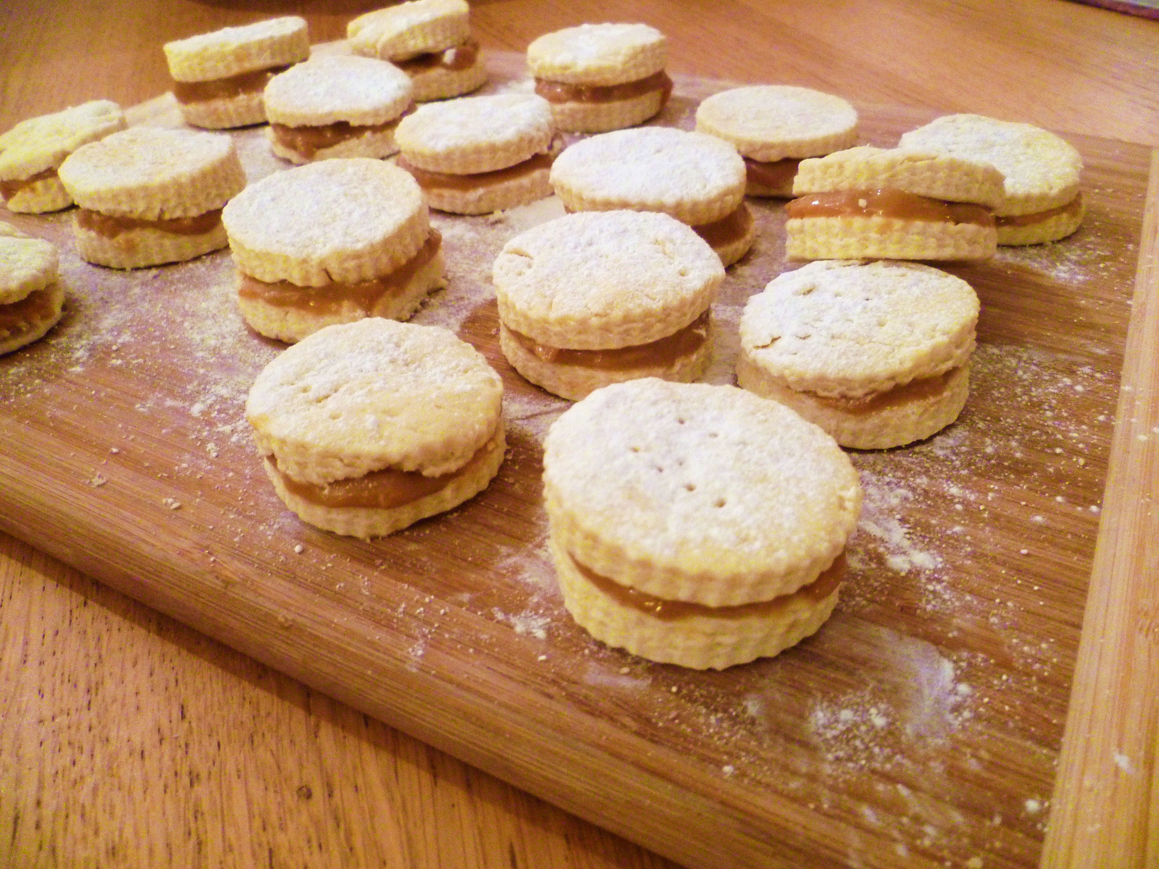 Farcite i biscotti con un cucchiaio di dulce de leche ciascuno e ricoprire con un altro biscotto.