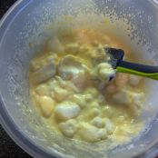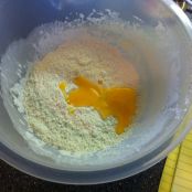 Prendiamo l'uovo e dividiamo il tuorlo dal bianco,quest'ultimo lo montiamo a neve e nel tuorlo ci aggiungiamo le gocce di vaniglia.Ora nella terrina con la farina aggiungiamo il tuorlo d'uovo, il latte con il burro e iniziamo a mescolare il tutto