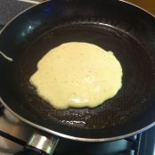Prendete una padella e imburratela,mettetela sul fuoco con una fiamma media e attendete che il burro si sciolga e inizi a sfrigolare, ora con un mestolo aggiungiamo il nostro impasto(riempiamo il mestolo un po meno della metà).