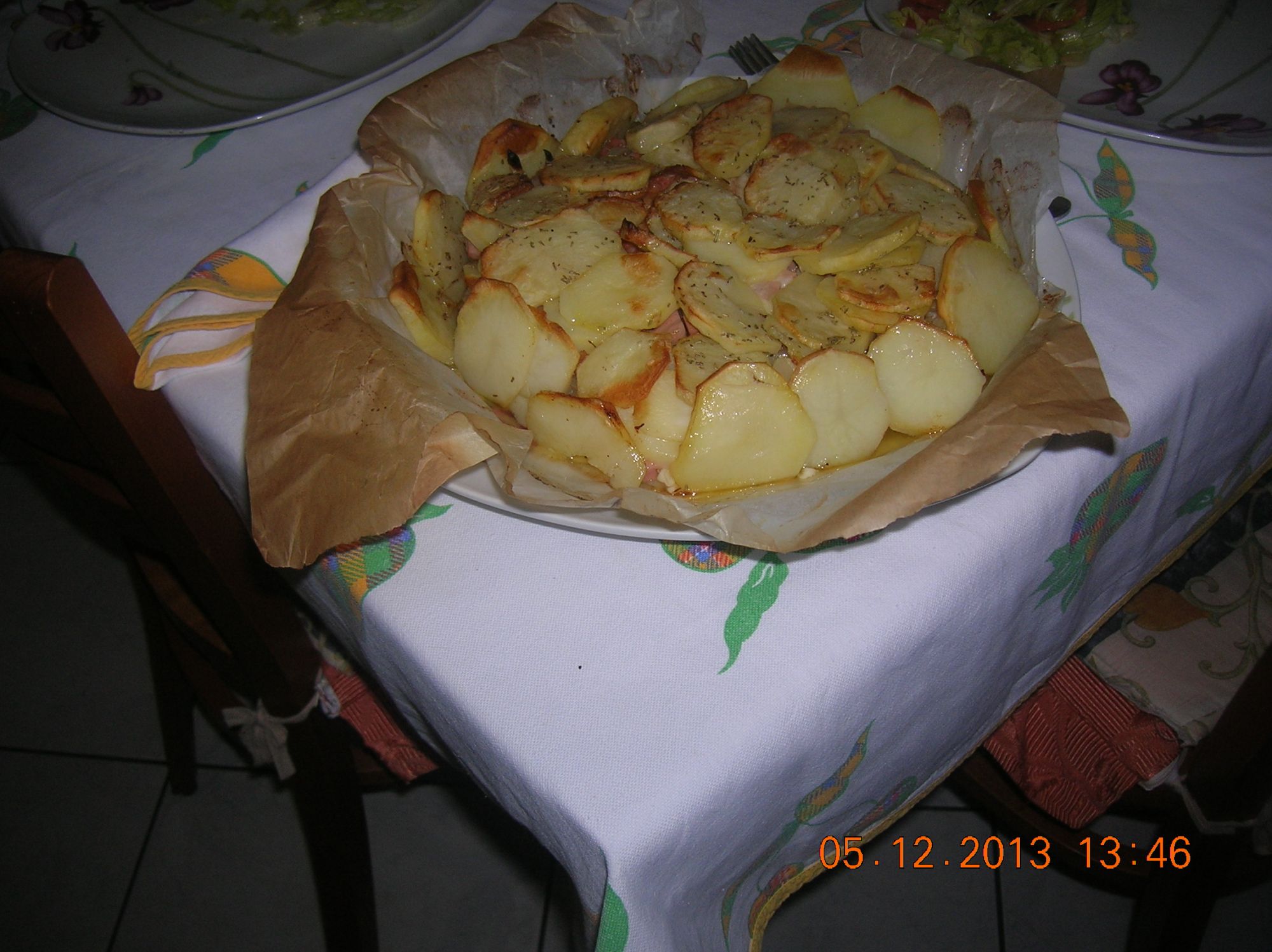 - 700gr. di patate ... circa 150gr. di mortadella a dadini ...e 100gr. di formaggio filante, 100gr. di margarina vegetale ...origano ...noce moscata ..sale pepe q.b.