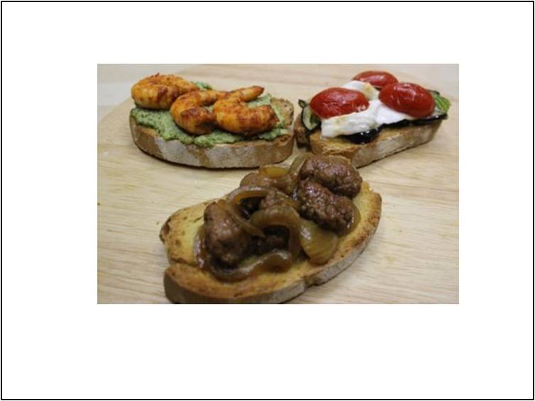 Il tris di bruschette e un antipasto colorato e sfizioso, ideale per essere servito in un buffet o per aprire un pasto