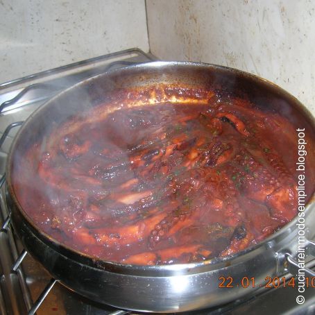 al 10' ho versato un pò di vino bianco.. giusto un giro ... ho fatto evaporare..raffinare un pochino ho unito prezzemolo e ho spento... col sughetto ho cotto circa 60 gr. di spaghetti per il figlio ...dopo averlo mangiato è rimasto del sughetto che ho messo in frigo e che userò venerdì per condire la pasta ..della serie che non si deve buttare via nulla ...non ho messo sale perché il polpo ne ha in abbondanza