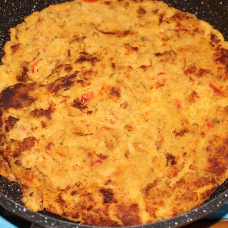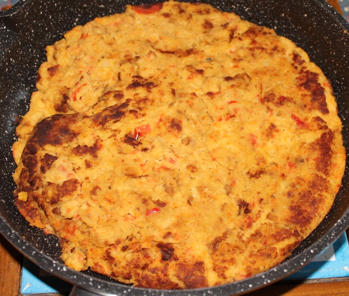 Soffriggere in padella la cipolla e farla imbiondire. Aggiungere la pastella e insaporirla con sale, pepe e aromi vari.