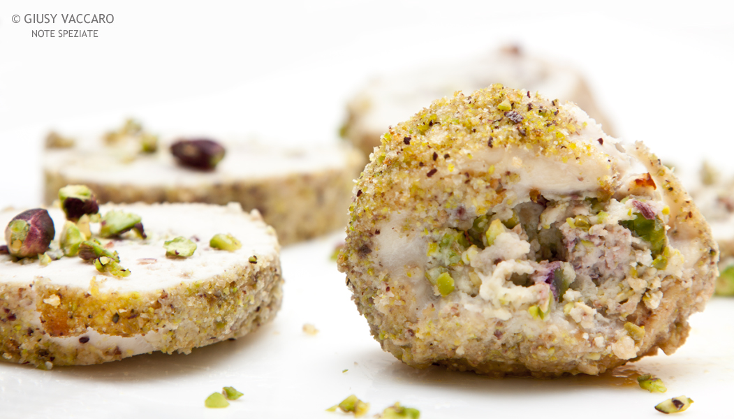 Ho messo le fette di pollo in un piatto fondo, le ho salate e unte da entrambi il lati con l'olio. In un piatto ho messo insieme il pangrattato e la polvere di pistacchio, le ho mescolate per bene e poi le ho usate per penare le fette di pollo. Ho disposte quest'ultime in una pirofila con della carta forno e cotte in forno a 200° per circa 15/20 min. A metà cottura ho girato le fette in modo da rendere la panure ben croccante su entrambi i lati. A cottura ultimata ci ho messo sopra la burrata a pezzetti e ho rimesso il tutto in forno per un minuto, giusto per farla fondere. Io l'ho mangiato su una bella insalatina di soncino condita giusto con sale, olio extra vergine d'oliva e aceto balsamico.