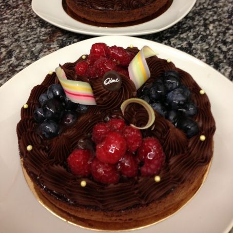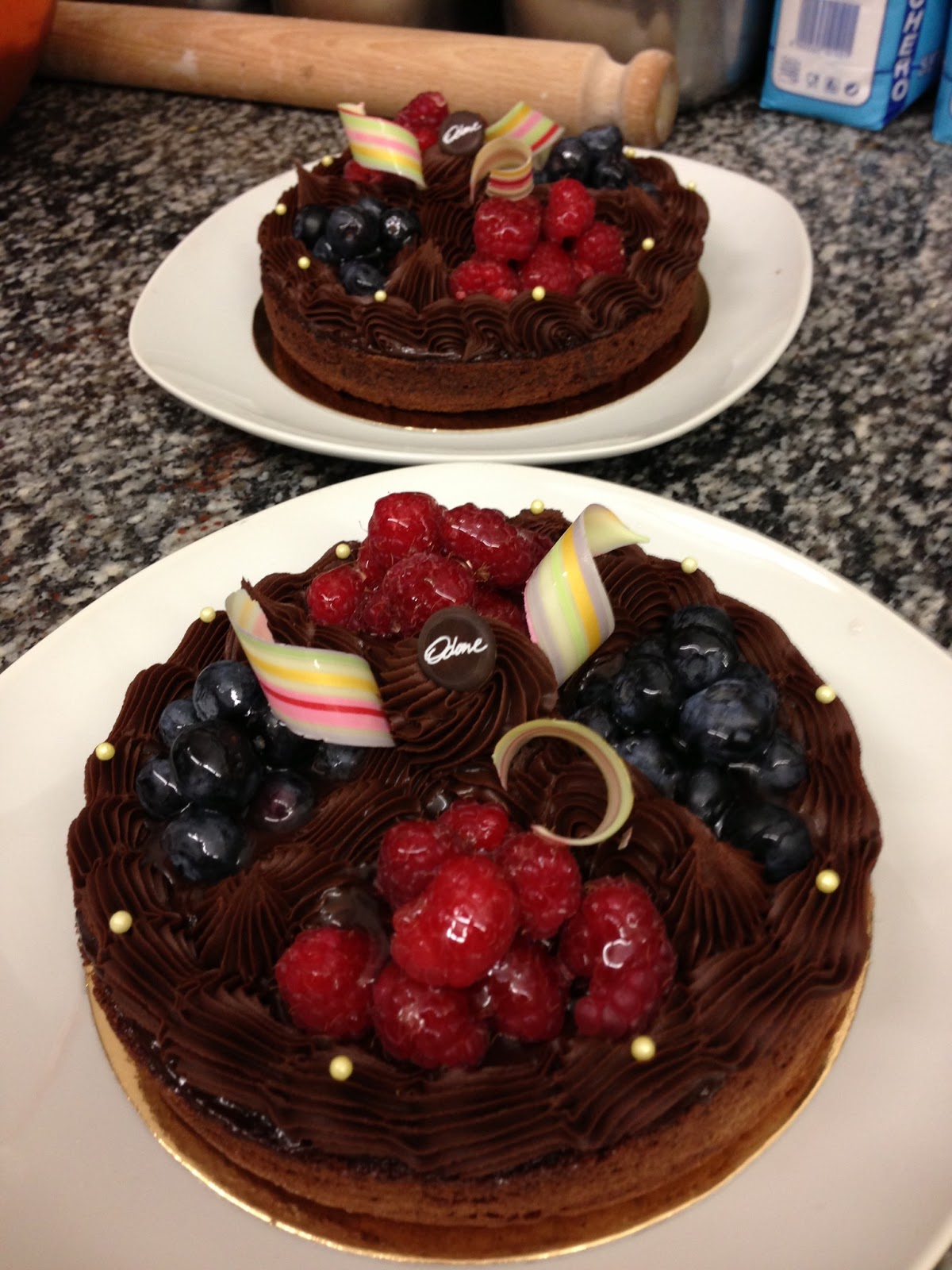 Portiamo a bollore la panna con il latte. Uniamo il cioccolato e mescoliamo finchè non si scioglie, in modo da creare una ganache liquida. Aggiungiamo le due uova ed emulsioniamo. Versiamo nel guscio di frolla e cuociamo 30 minuti a 180 gradi. Tagliamo la frutta a tocchetti, spadelliamo la frutta per un paio di minuti con il miele e una noce di burro. Guarniamo la crostata con la frutta caramellata.