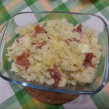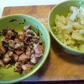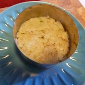 Per realizzare il divertente effetto di imitazione ho utilizzato solamente la parte bianca del cavolfiore che ho condito con un cucchiaino d'olio, sale, pepe ed abbondante erba cipollina tagliata finemente.
